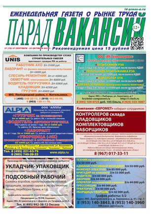 ЕЖЕНЕДЕЛЬНАЯ ГАЗЕТА О РЫНКЕ ТРУДА ПАРАД ВАКАНСИЙ