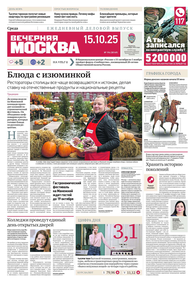 «Вечерняя Москва» — ежедневная российская вечерняя газета, старейшее из вечерних изданий в России, учрежденное в 1923 году. Выходит пять дней в неделю, кроме субботы и воскресенья. Отличается тем, что рассказывает о событиях еще не завершившегося дня. Оперативно освещает хронику и особенности жизни Москвы, охватывает все слои общества и большинство профессиональных и возрастных групп читателей.Издание представлено тремя выпусками – утренним ежедневным, вечерним (выходит три раза в неделю), еженедельным (выходит по четвергам).