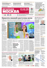 «Вечерняя Москва» — ежедневная российская вечерняя газета, старейшее из вечерних изданий в России, учрежденное в 1923 году. Выходит пять дней в неделю, кроме субботы и воскресенья. Отличается тем, что рассказывает о событиях еще не завершившегося дня. Оперативно освещает хронику и особенности жизни Москвы, охватывает все слои общества и большинство профессиональных и возрастных групп читателей.Издание представлено тремя выпусками – утренним ежедневным, вечерним (выходит три раза в неделю), еженедельным (выходит по четвергам).