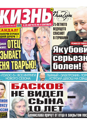 Еженедельная газета, предназначенная для семейного чтения. Основные рубрики: самые скандальные и интересные события прошедшей недели, политический комментарий Леонида Шахова, пикантные истории из звездной жизни, советы профессионального психолога, действенные рецепты здоровья, гороскоп, кроссворд, конкурсы, сканворды, розыгрыши билетов в кинотеатры и множество других призов. Приложения к газете «Жизнь»: «Телеэкран» - телепрограмма с подробными анонсами кино и сериалов, «Овертайм» - спортивное обозрение.