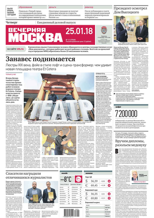 «Вечерняя Москва» — ежедневная российская вечерняя газета, старейшее из вечерних изданий в России, учрежденное в 1923 году. Выходит пять дней в неделю, кроме субботы и воскресенья. Отличается тем, что рассказывает о событиях еще не завершившегося дня. Оперативно освещает хронику и особенности жизни Москвы, охватывает все слои общества и большинство профессиональных и возрастных групп читателей.Издание представлено тремя выпусками – утренним ежедневным, вечерним (выходит три раза в неделю), еженедельным (выходит по четвергам).