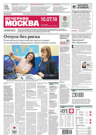 «Вечерняя Москва» — ежедневная российская вечерняя газета, старейшее из вечерних изданий в России, учрежденное в 1923 году. Выходит пять дней в неделю, кроме субботы и воскресенья. Отличается тем, что рассказывает о событиях еще не завершившегося дня. Оперативно освещает хронику и особенности жизни Москвы, охватывает все слои общества и большинство профессиональных и возрастных групп читателей.Издание представлено тремя выпусками – утренним ежедневным, вечерним (выходит три раза в неделю), еженедельным (выходит по четвергам).