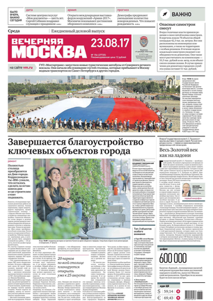 «Вечерняя Москва» — ежедневная российская вечерняя газета, старейшее из вечерних изданий в России, учрежденное в 1923 году. Выходит пять дней в неделю, кроме субботы и воскресенья. Отличается тем, что рассказывает о событиях еще не завершившегося дня. Оперативно освещает хронику и особенности жизни Москвы, охватывает все слои общества и большинство профессиональных и возрастных групп читателей.Издание представлено тремя выпусками – утренним ежедневным, вечерним (выходит три раза в неделю), еженедельным (выходит по четвергам).