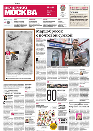 «Вечерняя Москва» — ежедневная российская вечерняя газета, старейшее из вечерних изданий в России, учрежденное в 1923 году. Выходит пять дней в неделю, кроме субботы и воскресенья. Отличается тем, что рассказывает о событиях еще не завершившегося дня. Оперативно освещает хронику и особенности жизни Москвы, охватывает все слои общества и большинство профессиональных и возрастных групп читателей.Издание представлено тремя выпусками – утренним ежедневным, вечерним (выходит три раза в неделю), еженедельным (выходит по четвергам).