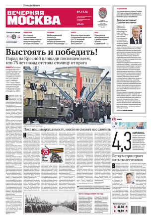 «Вечерняя Москва» — ежедневная российская вечерняя газета, старейшее из вечерних изданий в России, учрежденное в 1923 году. Выходит пять дней в неделю, кроме субботы и воскресенья. Отличается тем, что рассказывает о событиях еще не завершившегося дня. Оперативно освещает хронику и особенности жизни Москвы, охватывает все слои общества и большинство профессиональных и возрастных групп читателей.Издание представлено тремя выпусками – утренним ежедневным, вечерним (выходит три раза в неделю), еженедельным (выходит по четвергам).