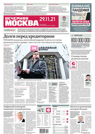 «Вечерняя Москва» — ежедневная российская вечерняя газета, старейшее из вечерних изданий в России, учрежденное в 1923 году. Выходит пять дней в неделю, кроме субботы и воскресенья. Отличается тем, что рассказывает о событиях еще не завершившегося дня. Оперативно освещает хронику и особенности жизни Москвы, охватывает все слои общества и большинство профессиональных и возрастных групп читателей.Издание представлено тремя выпусками – утренним ежедневным, вечерним (выходит три раза в неделю), еженедельным (выходит по четвергам).