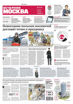 «Вечерняя Москва» — ежедневная российская вечерняя газета, старейшее из вечерних изданий в России, учрежденное в 1923 году. Выходит пять дней в неделю, кроме субботы и воскресенья. Отличается тем, что рассказывает о событиях еще не завершившегося дня. Оперативно освещает хронику и особенности жизни Москвы, охватывает все слои общества и большинство профессиональных и возрастных групп читателей.Издание представлено тремя выпусками – утренним ежедневным, вечерним (выходит три раза в неделю), еженедельным (выходит по четвергам).