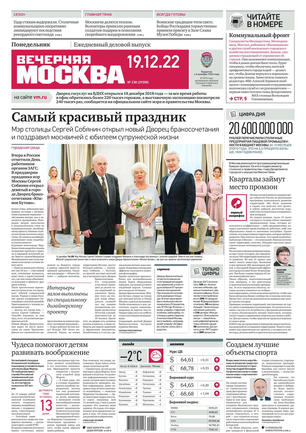 «Вечерняя Москва» — ежедневная российская вечерняя газета, старейшее из вечерних изданий в России, учрежденное в 1923 году. Выходит пять дней в неделю, кроме субботы и воскресенья. Отличается тем, что рассказывает о событиях еще не завершившегося дня. Оперативно освещает хронику и особенности жизни Москвы, охватывает все слои общества и большинство профессиональных и возрастных групп читателей.Издание представлено тремя выпусками – утренним ежедневным, вечерним (выходит три раза в неделю), еженедельным (выходит по четвергам).