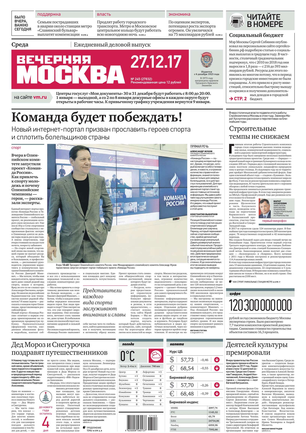 «Вечерняя Москва» — ежедневная российская вечерняя газета, старейшее из вечерних изданий в России, учрежденное в 1923 году. Выходит пять дней в неделю, кроме субботы и воскресенья. Отличается тем, что рассказывает о событиях еще не завершившегося дня. Оперативно освещает хронику и особенности жизни Москвы, охватывает все слои общества и большинство профессиональных и возрастных групп читателей.Издание представлено тремя выпусками – утренним ежедневным, вечерним (выходит три раза в неделю), еженедельным (выходит по четвергам).