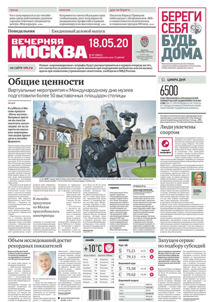 «Вечерняя Москва» — ежедневная российская вечерняя газета, старейшее из вечерних изданий в России, учрежденное в 1923 году. Выходит пять дней в неделю, кроме субботы и воскресенья. Отличается тем, что рассказывает о событиях еще не завершившегося дня. Оперативно освещает хронику и особенности жизни Москвы, охватывает все слои общества и большинство профессиональных и возрастных групп читателей.Издание представлено тремя выпусками – утренним ежедневным, вечерним (выходит три раза в неделю), еженедельным (выходит по четвергам).